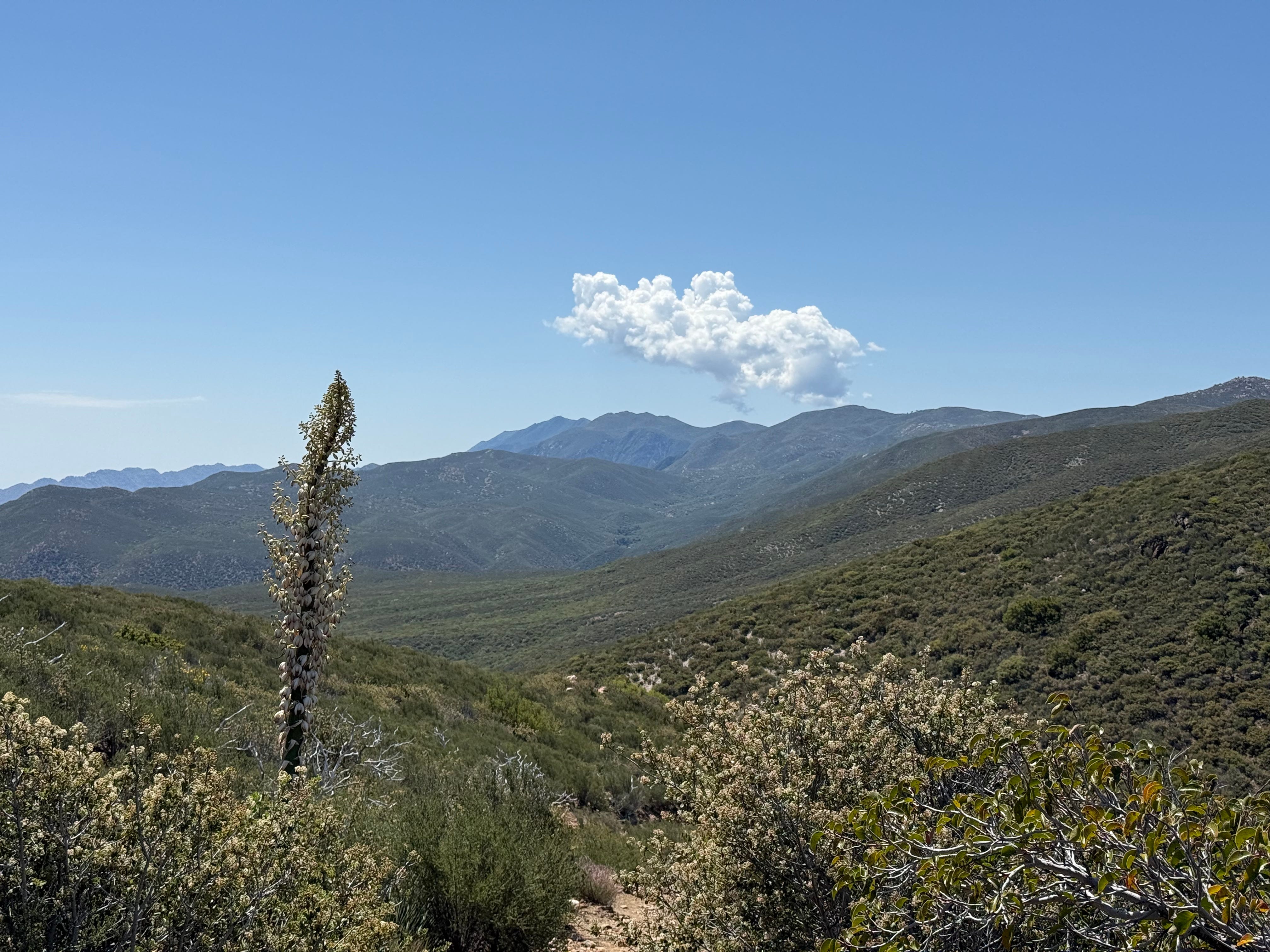 The first few days were spent in Cleveland National Forest, where the 40 degree temperatures, constant rain, and 30+ MPH gusts presented early challenges to both my gear and mental fortitude. While the thick fog took away most of the good view spots it also kept us cool during some of the largest climbs in this section.