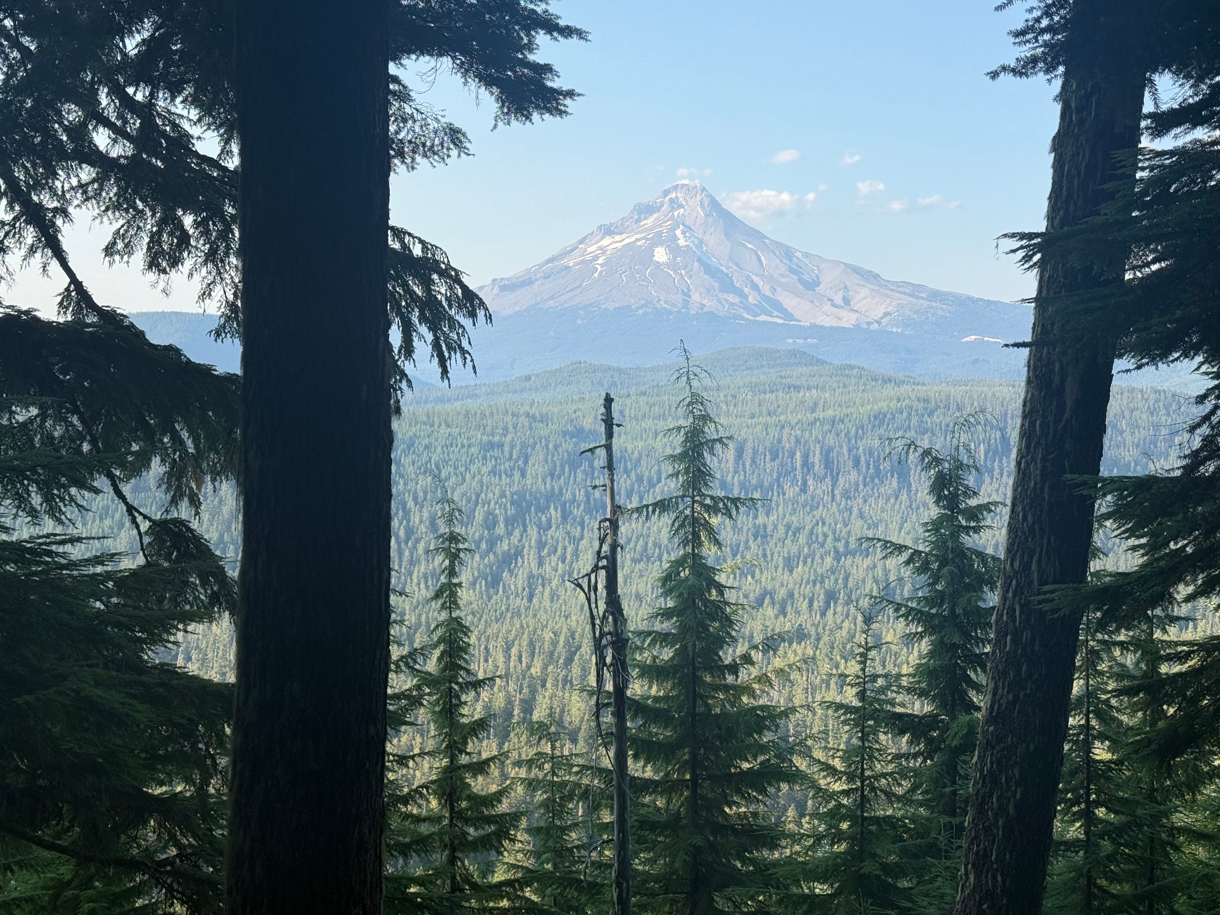 The following day we entered the Mt. Hood National Forest and got our first glimpse of its namesake, the tallest mountain in Oregon, at over 11,000 feet. Determined to get to the famous Timberline Lodge in time for the all you can eat breakfast buffet we pushed through the next two days. Thankfully this stretch was loaded with wild blueberries, blackberries, huckleberries, and thimble berries which we could pick in motion, growing over into our path.