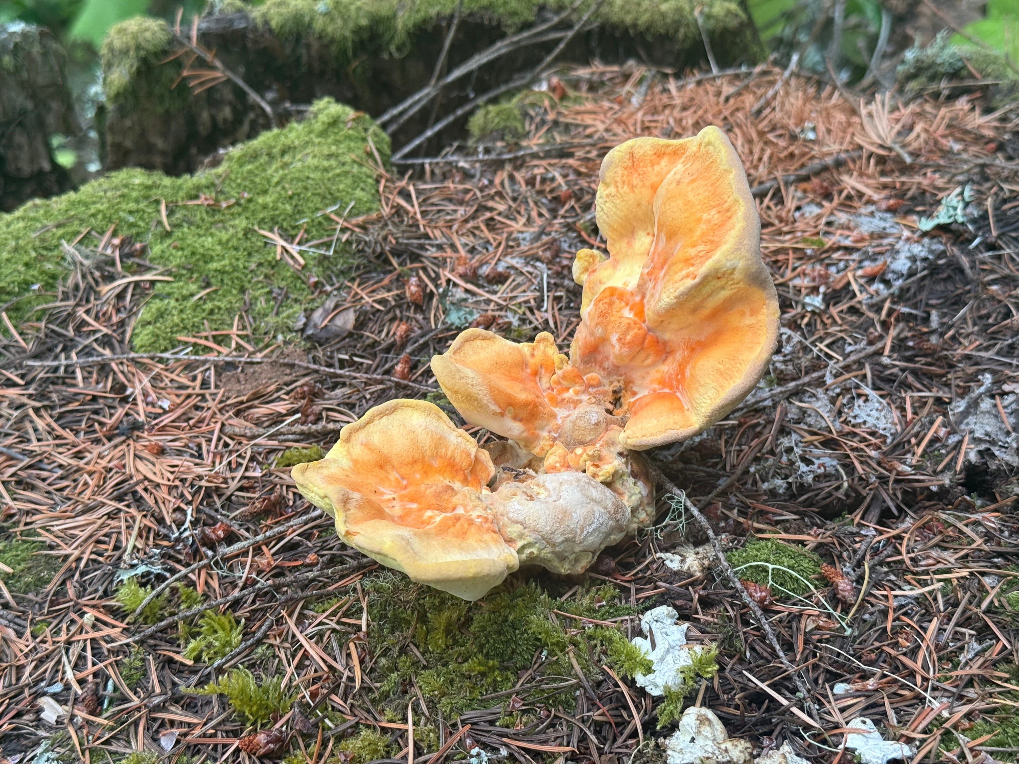 Once over the first ridge we found ourselves in the most lush of forests we’ve walked through to date. Each canyon was filled with bright green pine, fern, and a plethora of ground plants. The damp, dank forest floor is an ideal spot for fungi and I’ve gotten lessons from local foragers on how to spot the famous chanterelle, porchini, matsutake, oyster, and lobster mushrooms as well as lesser known favorites like the cauliflower, coral, and chicken of the woods.