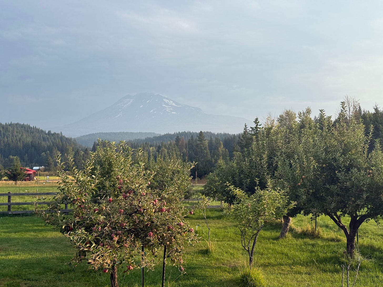 In Trout Lake we were hosted by a lovely woman, Steph, who opened the farmhouse where she raised her family in an attempt to give Mo a chance to heal in a real bed. We picked apples from her orchard with an unobstructed view of Mt. Adams in the background and got to interact with the (sometimes nefarious) animals on the property.