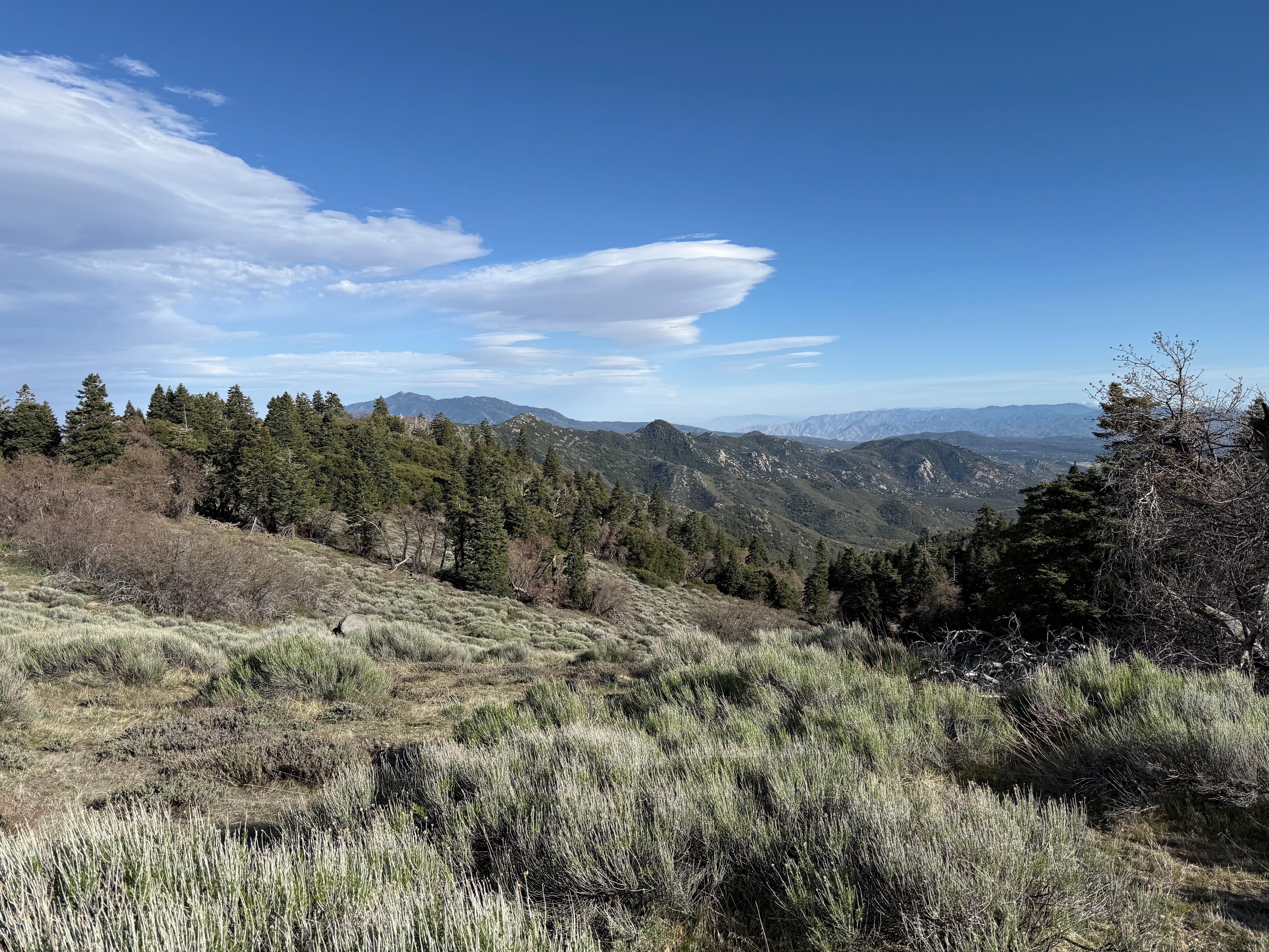 Just a couple dozen miles and less that 36 hours later we began climbing the cooler, forested slopes of the San Jacinto Mountains. Covering 1,200 square miles and with a max elevation of 10,834 feet, the range is affectionately referred to as the “Baby Sierra” (the Sierra Nevada, for context, covers 24,000 square miles and tops out at 14,505 feet). This section had towering jeffrey pines and firs, many of which were torched from wildfires in 2013 and 2018.