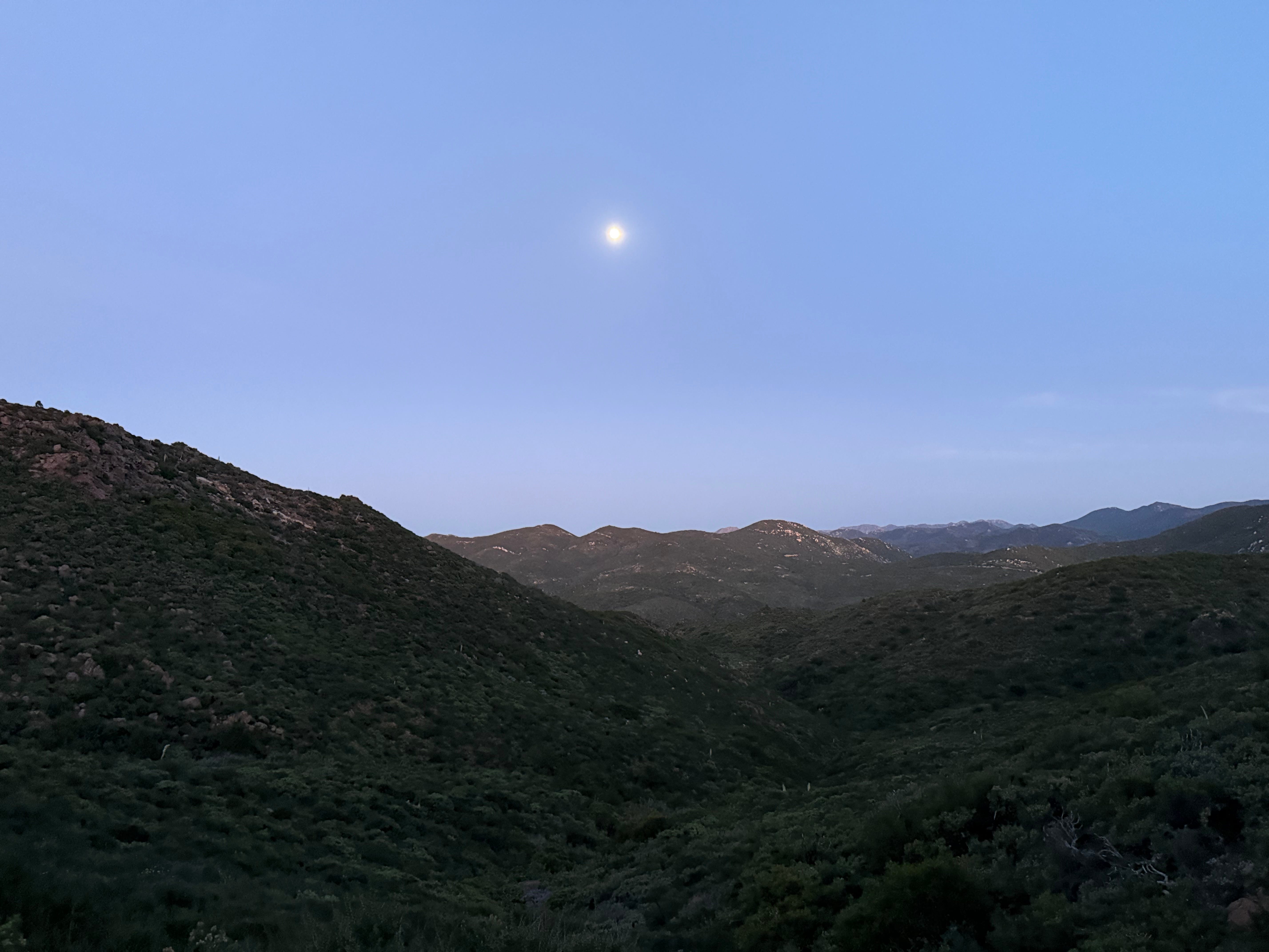 Once the sun was down, we would set back out for another 5-6 miles, guided by a full moon. It was my first experience with night hiking and is something I will definitely be doing more of throughout the rest of the trek. We would set up camp in the dark and pass out immediately, with another early wakeup on deck.