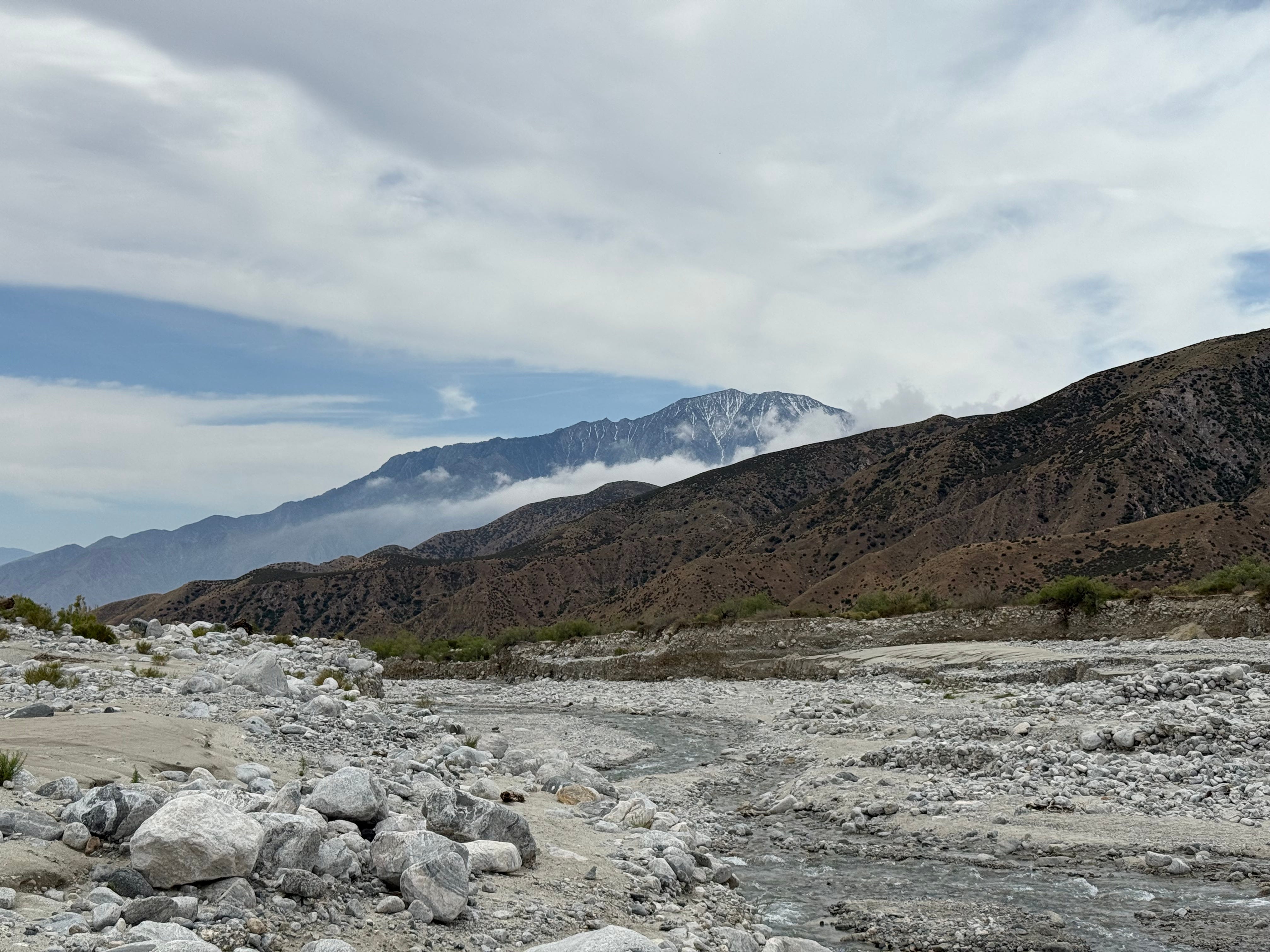 The next morning, we began our ascent into San Bernardino National Forest. We spent about 15 miles scrambling through a riverbed of unmarked trail, the result of a hurricane washout from 2023. It was fun at first, reminding me of summer days spent scrambling through creeks in Maryland with my cousins Henry, Lexi, and Lily. The charm quickly wore off and the pain of walking on rocks for hours on end couldn’t stop soon enough.
