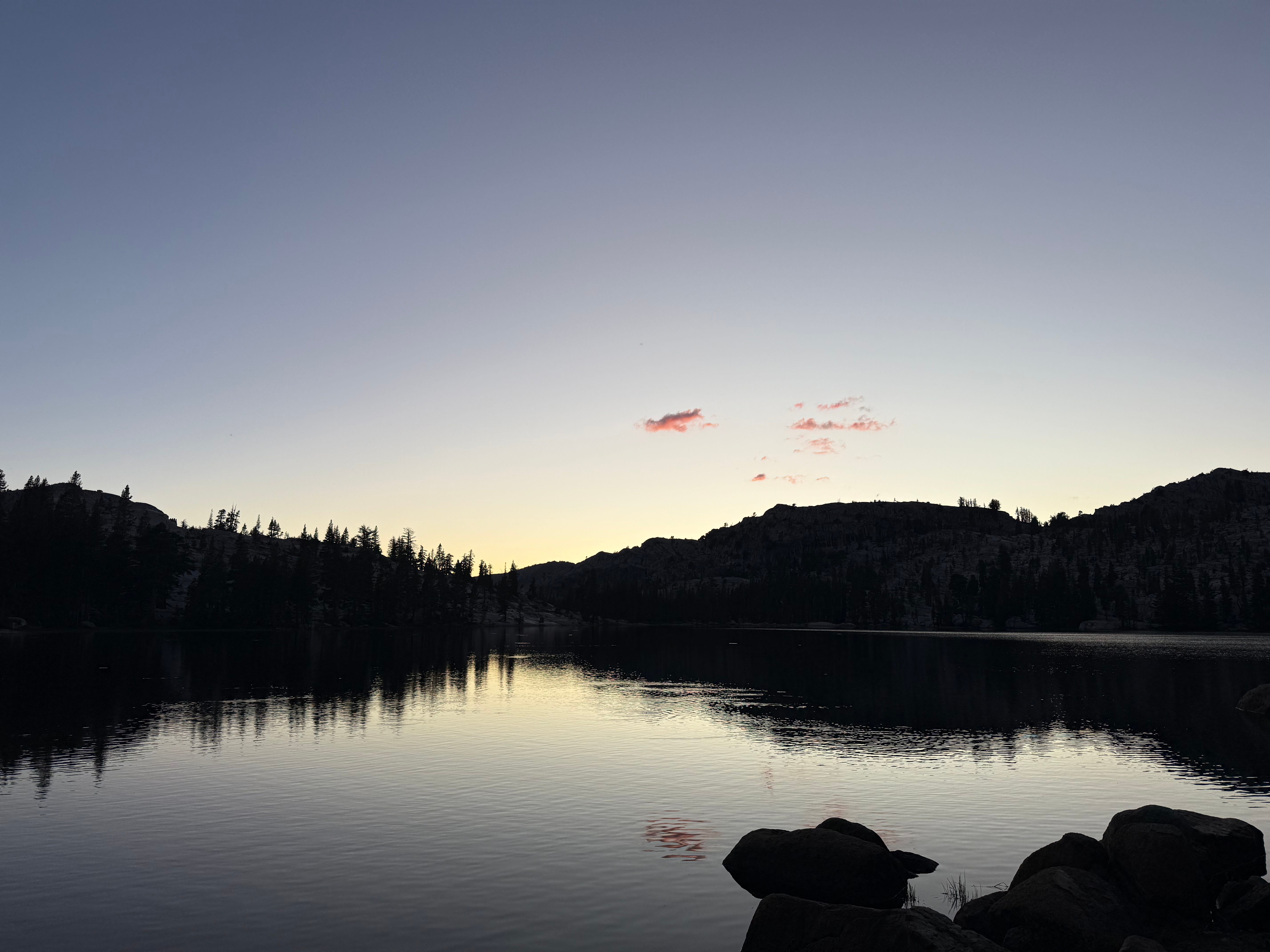 We spent a night at the Lost Lakes, getting in on the later side, but we’re treated to a moonrise over dinner behind the mountain that cut off the perfectly calm water. We were also blessed with a fair amount of trail magic as we got closer to civilization. First from a brother and sister, honoring their late father who was a backpacker all the way through his 70s, then at the Carson Pass visitor center where volunteers had set up a PCT-specific recovery area. There were signs explaining the PCT at each trailhead for this popular day hike destination and folks were extraordinarily differential and kind to us as we came through. It was common to have a stranger tell us how great we were doing or how proud of us they were as we walked by, accompanied by a beaming smile. It honestly meant so much seeing how our little journey could inspire others. We saw quite a few older folks on backpacking trips and day hikes. People well into their 70s and 80s shuffling up these mountain. A great reminder to continue hiking, knowing it’s something we can love now and for the rest of our lives.
