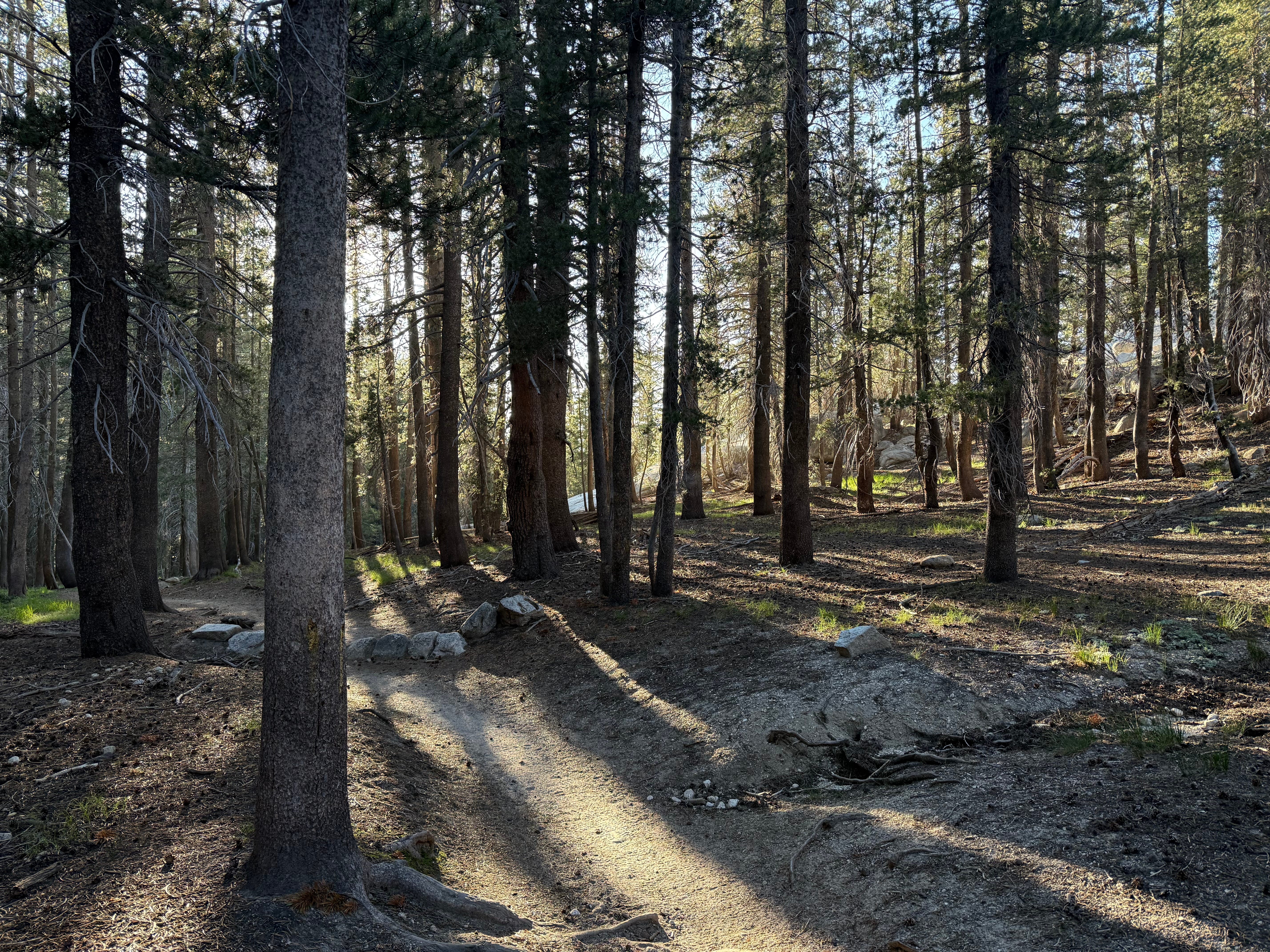 At the end of our second day we knew we had to leave the vortex and get back to trail. Shortly after returning to the wilderness, the chaos of the Valley melted into a quiet serenity. Just 2 miles in I was walking along a gently flowing stream, I noticed three deer on the other bank, a mother and two fawns, picking at grasses along the water’s edge. The sun, two hours from setting, blasted light through the trees. Birds chirped and insects buzzed by and I slowly rolled past another waterfall. Order had been restored to the world.