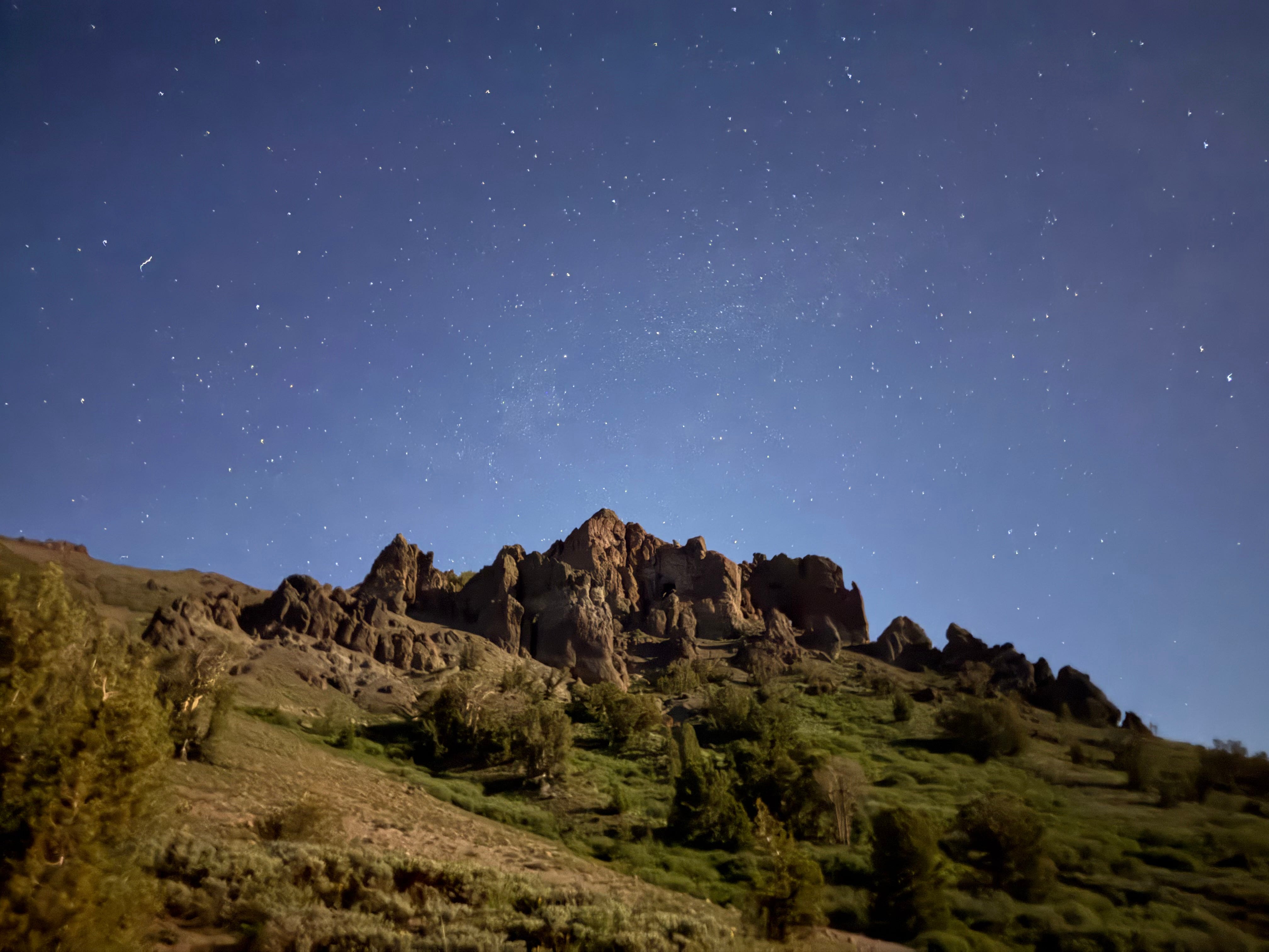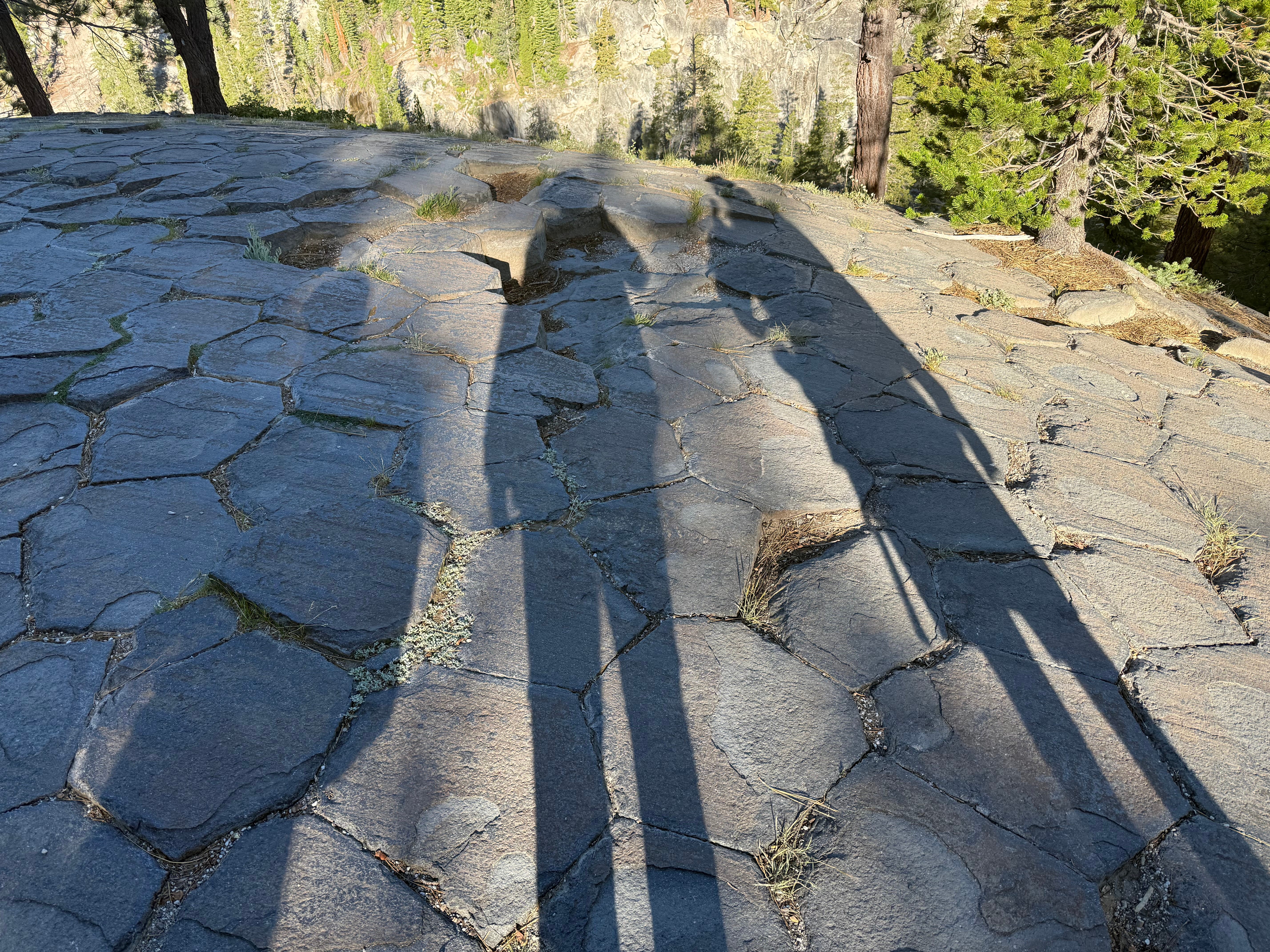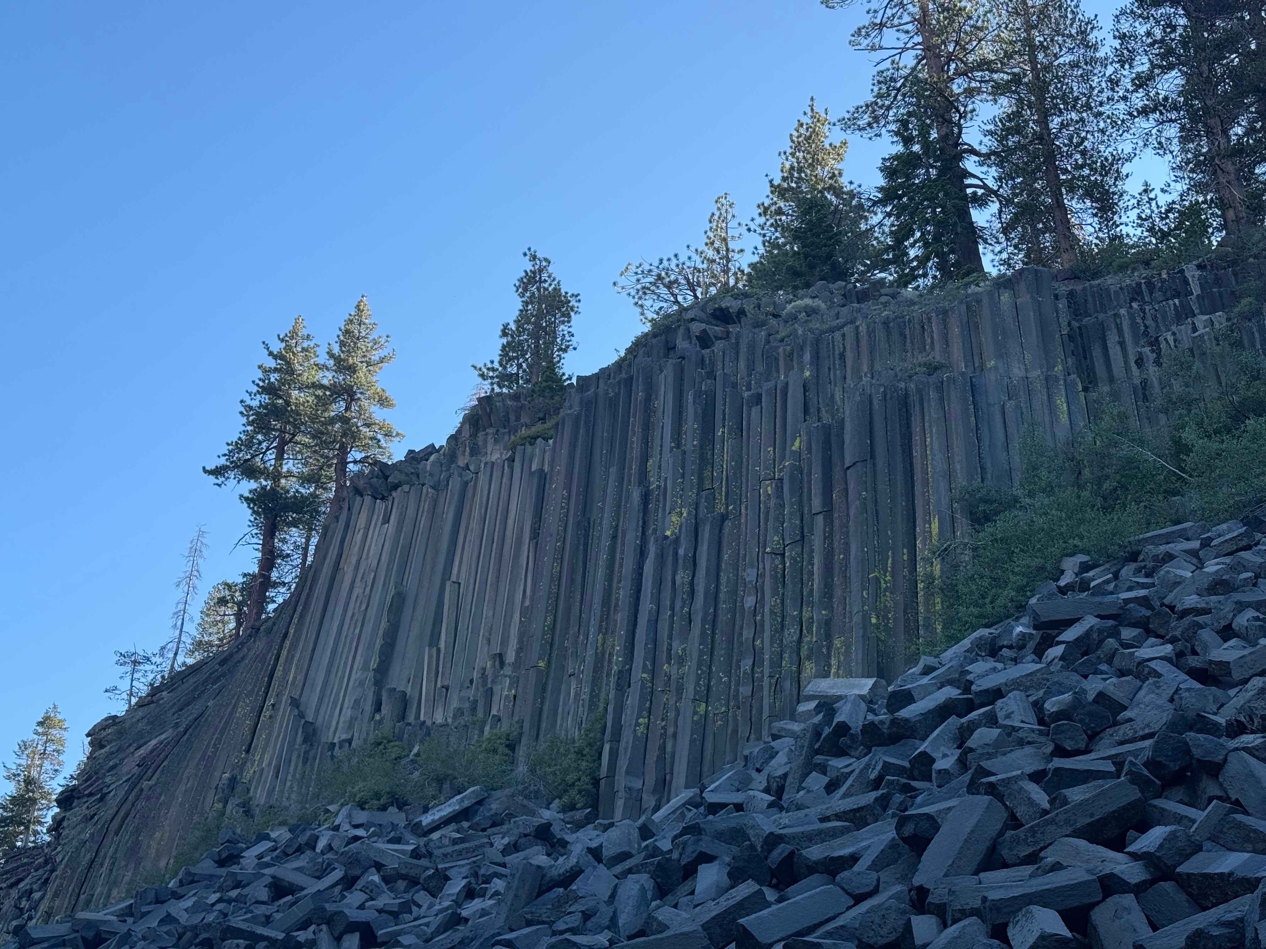 We left Mammoth Lakes in the evening, with the goal of making it to the nearby Reds Meadow Resort shortly before nightfall. Usually a bustling camping destination given its car accessibility, it was quiet, only filled with thru-hikers, enjoying the last two days before the road opened for the season. The highlight was the natural hot springs, which are seemingly always positioned directly next to a frigid stream, and we soaked under the stars. The next morning we walked a little under a mile to Devils Postpile National Monument, a columnar basalt formation from ~100,000 years ago, far more recent than the millions initially estimated. Lava flowed, cooled, and cracked in a hexagonal shape, similar to mud. Then glaciers covered the formation during the last ice age and when they receded, they sheared off the top of the 60 foot columns, leaving a nearly perfect cross-section you can walk on.