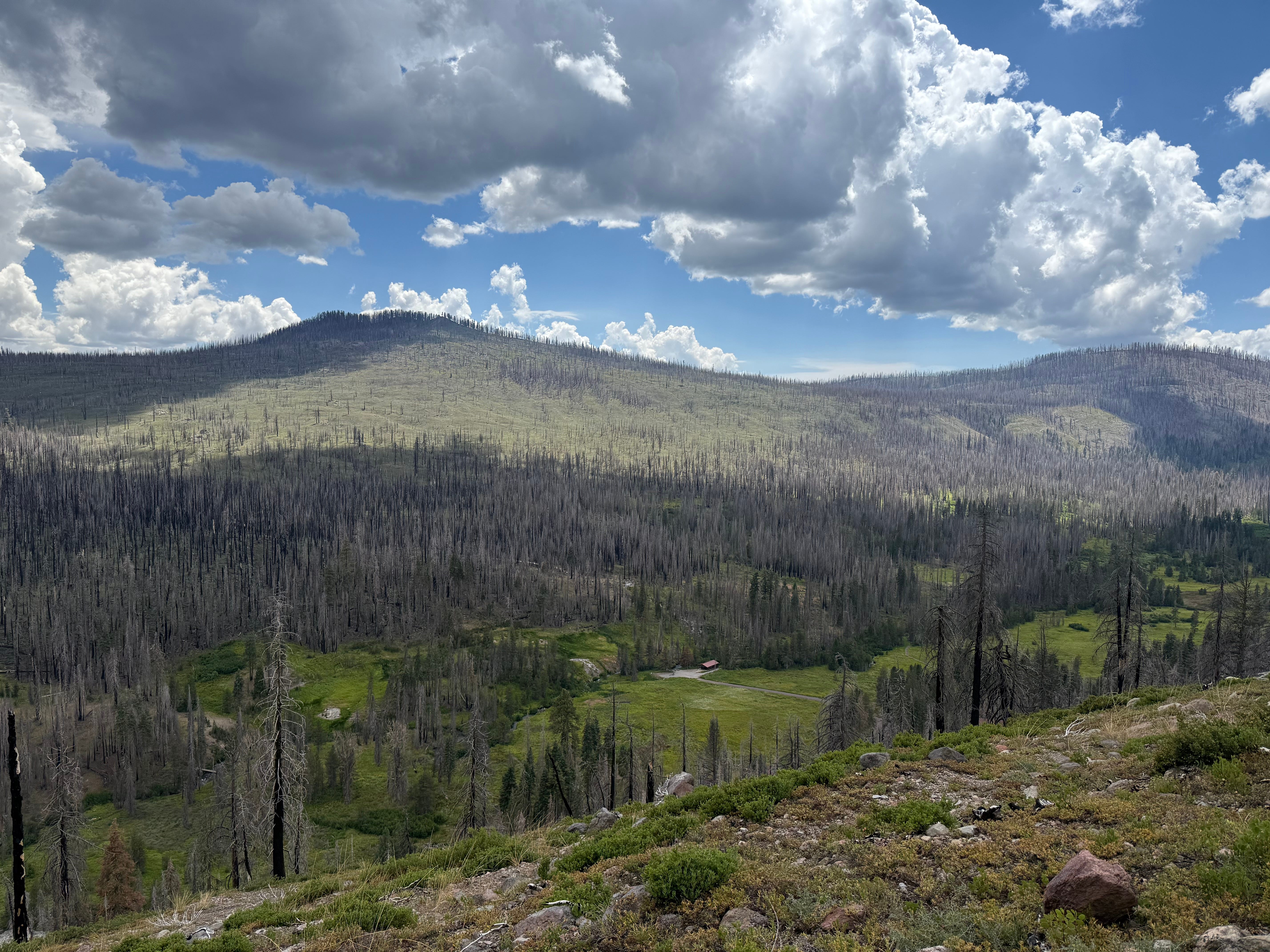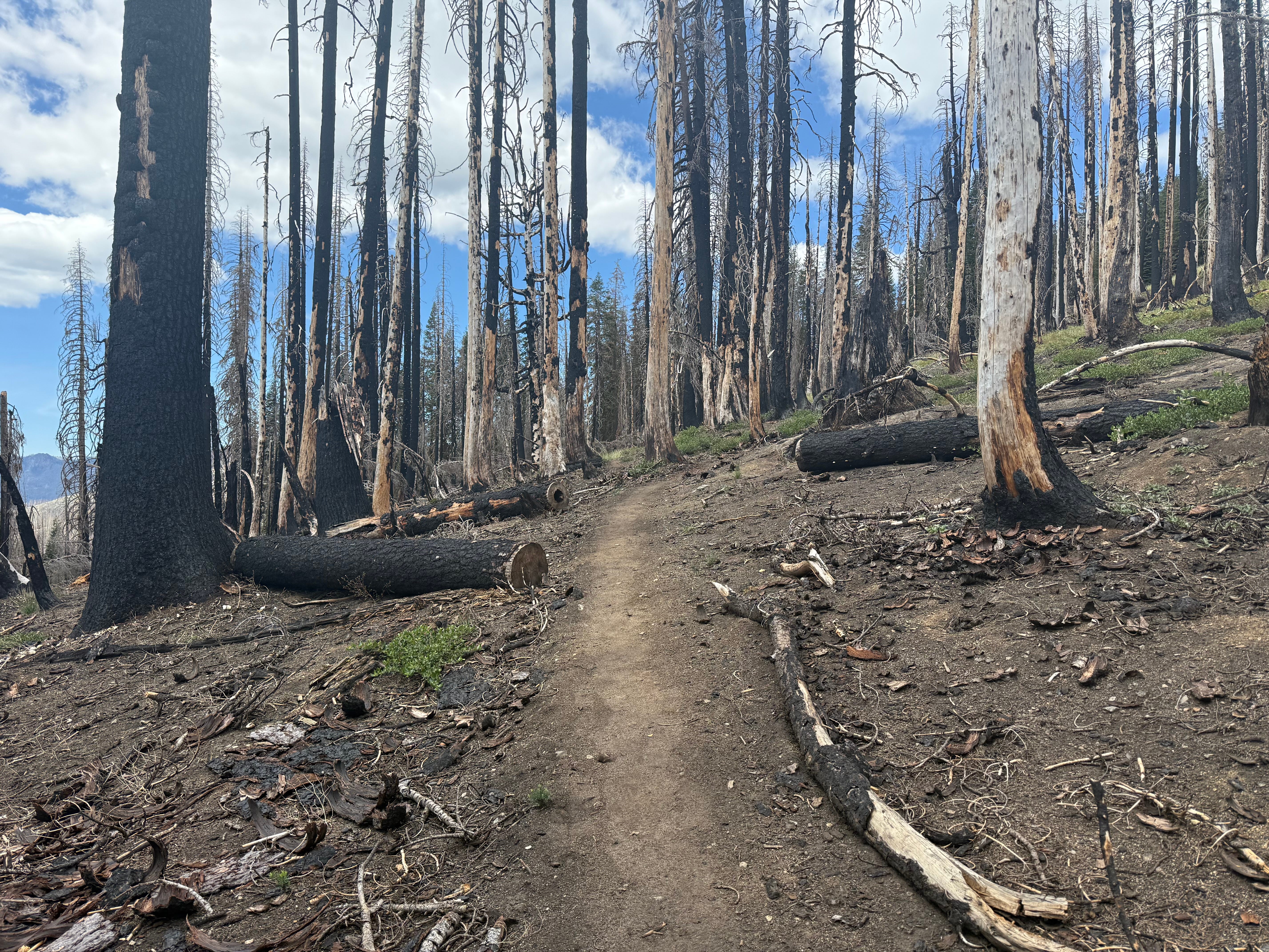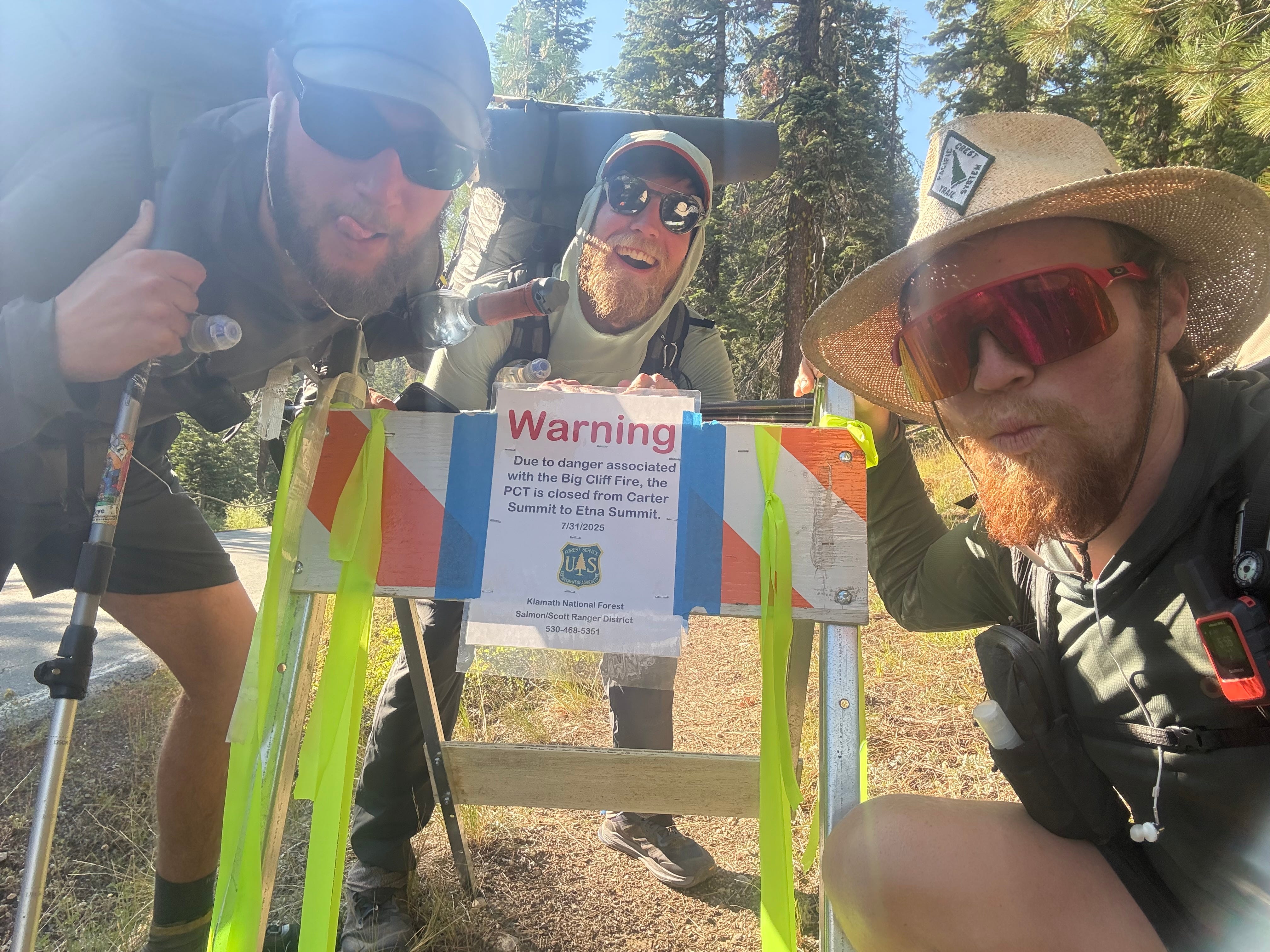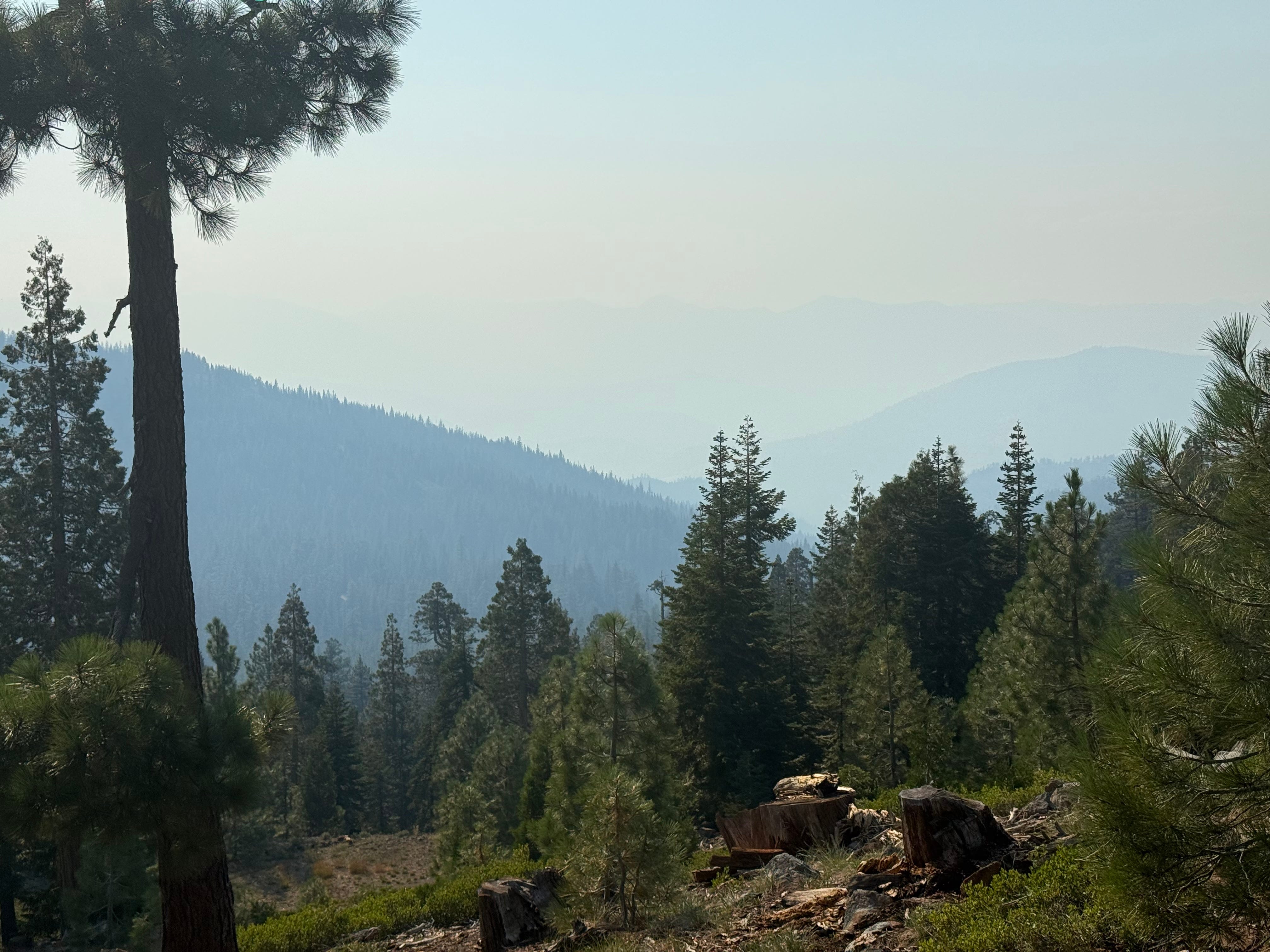 As we grew closer to Etna we began to see and then feel the effects of the Big Cliff Fire, burning less than 2 miles from the trail and closing it from miles 1,581 to 1,601. The fire resulted from one of the lightning storms we had endured days earlier and was a deflating development as we thought we were going to get through this often fire-closed section unscathed. Even still, we were extremely lucky because as we approached the final section before the closure a westward wind reduced the AQI from 300 to under 50 and allowed for safe passage. Once we reached the closure itself, we turned down a forest service road, N95s in waiting, and camped, ready for a hybrid dirt and paved road walk into town the next day.