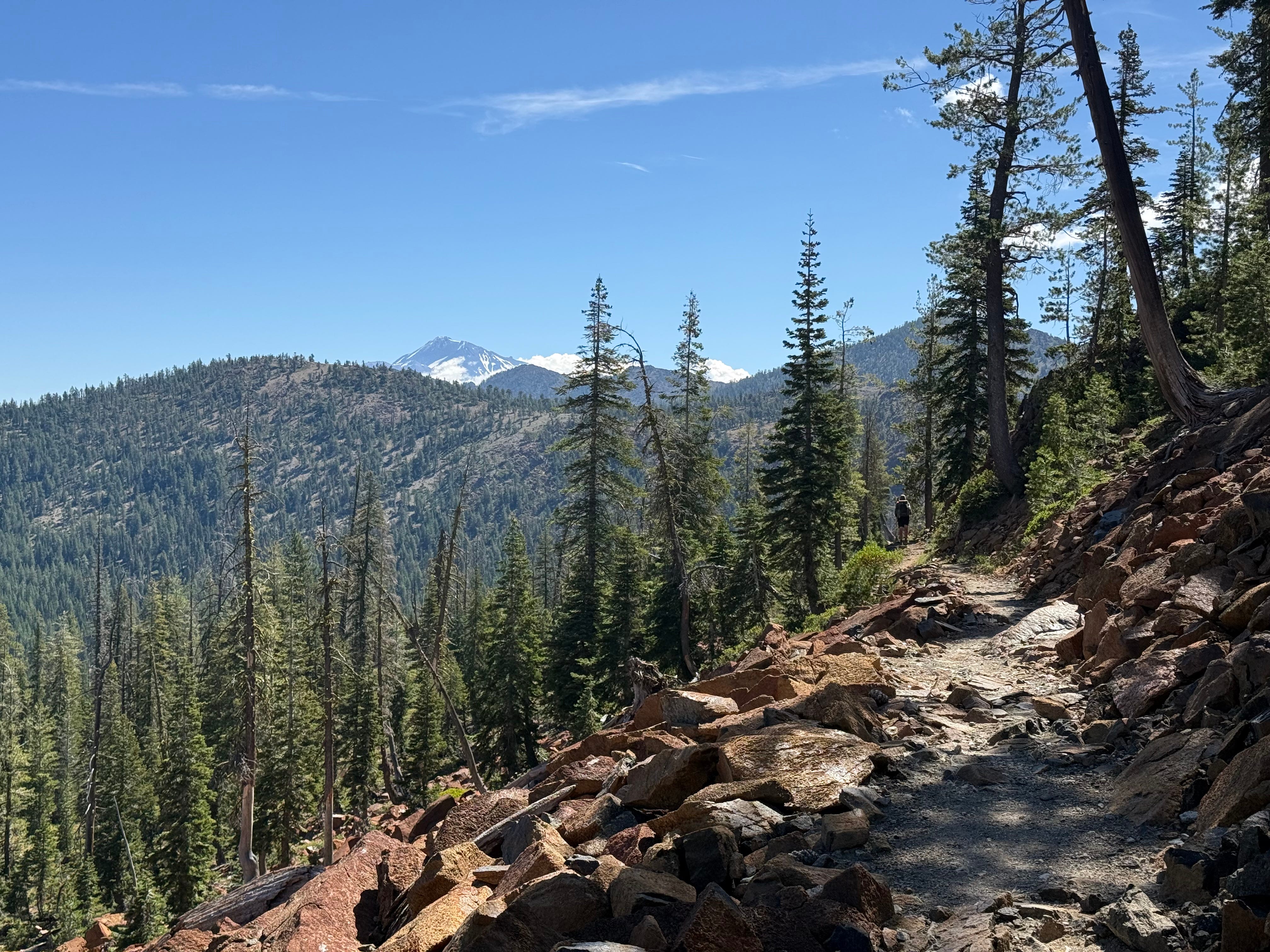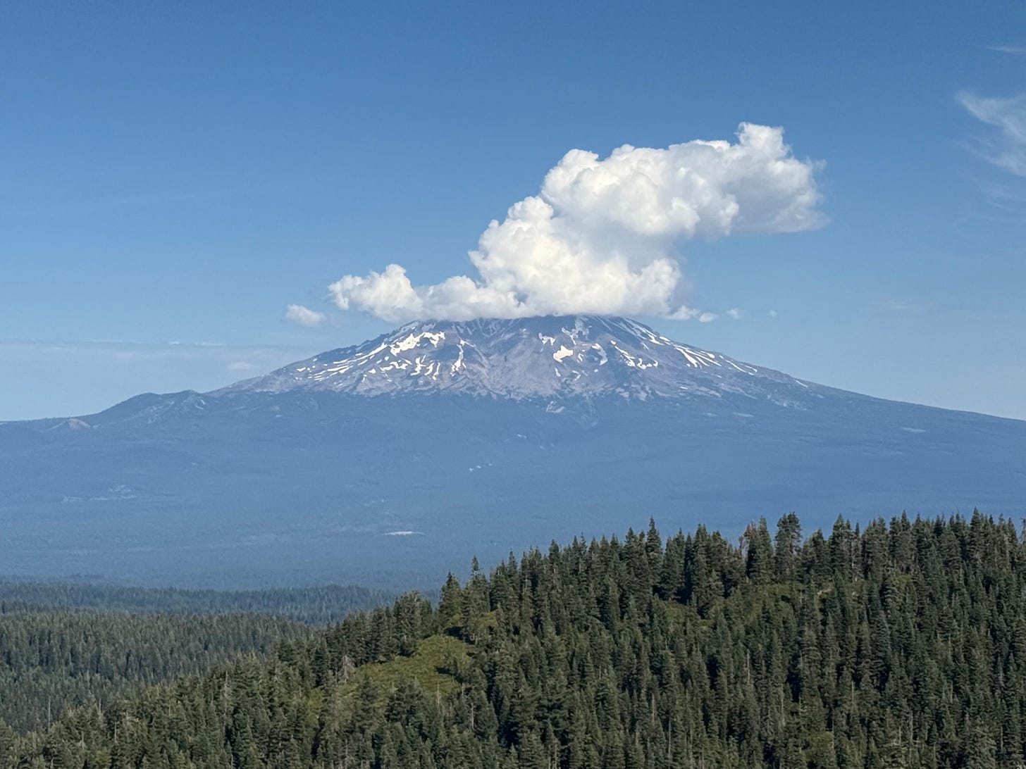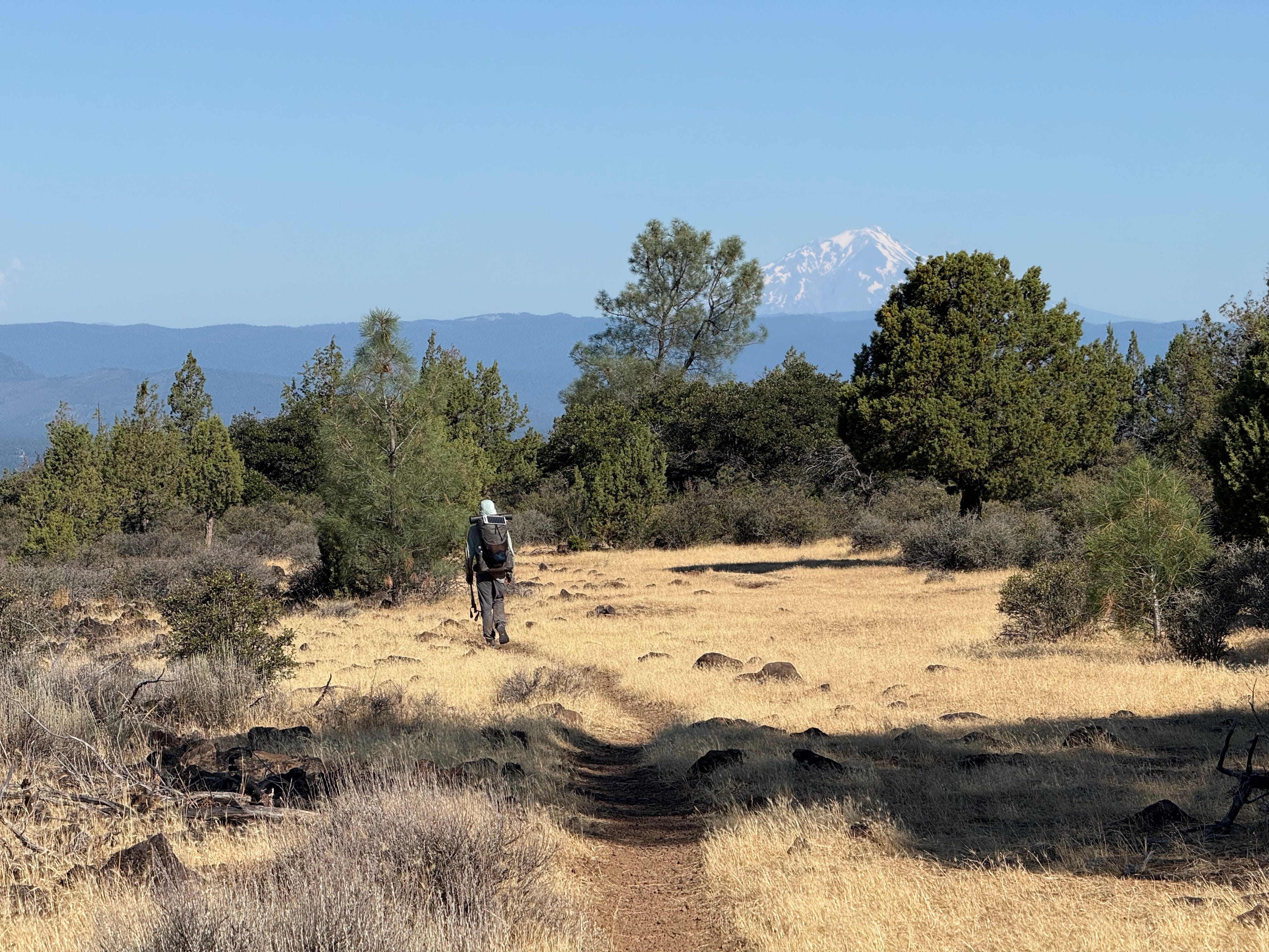 The next few days had much easier terrain than normal, relatively flat and devoid of punishing rocks. Just as we passed Mt. Lassen (10,437’), we got our first views of Mt. Shasta (14,179’). Although we didn’t discuss it at the time, we all independently relayed what an unexpectedly spiritual experience it was to walk from one towering volcano to the other, Shasta becoming more prominent as Lassen faded into the distance.
