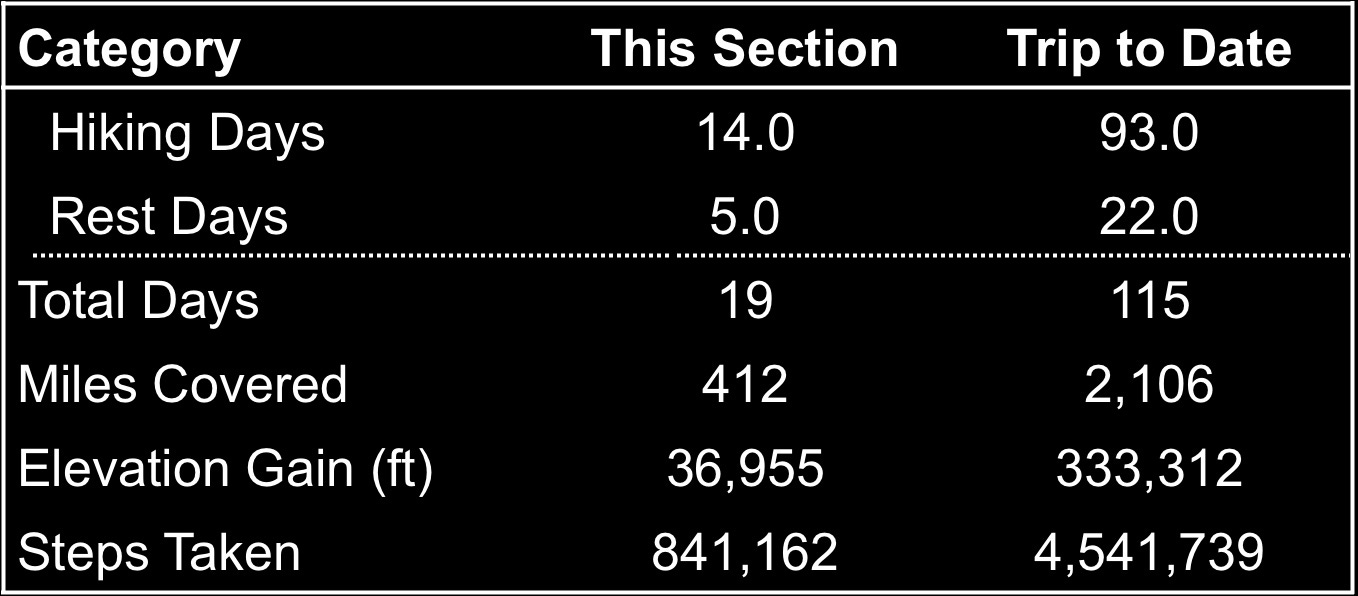 The next two days were a lot of the same heat wave, but over time we’ve adjusted to exertion in temperatures that would have once kept us in the shade the bulk of the day and we made it to the state border on schedule. After 100 days of hiking in California, I’d finally entered my second state!