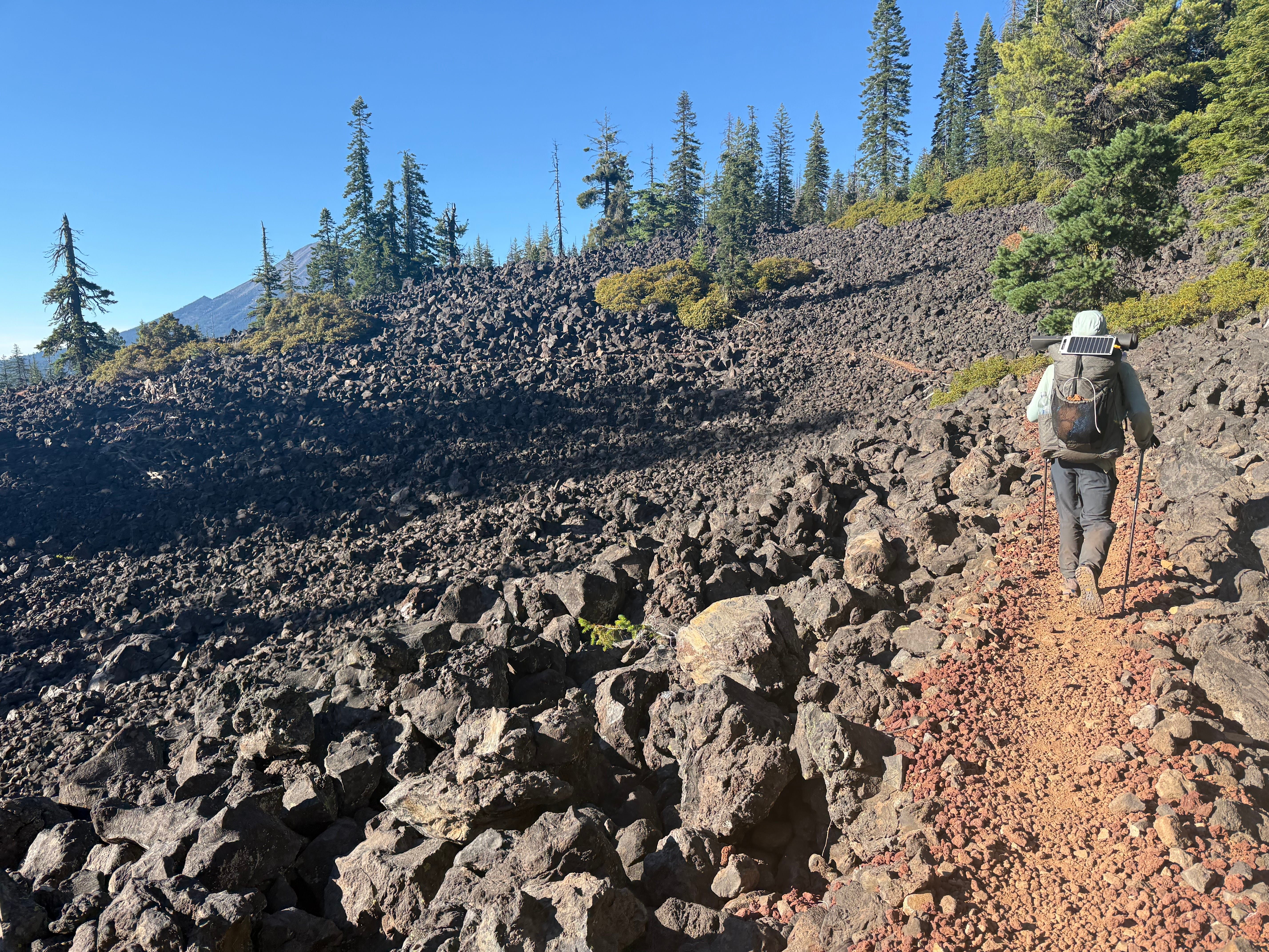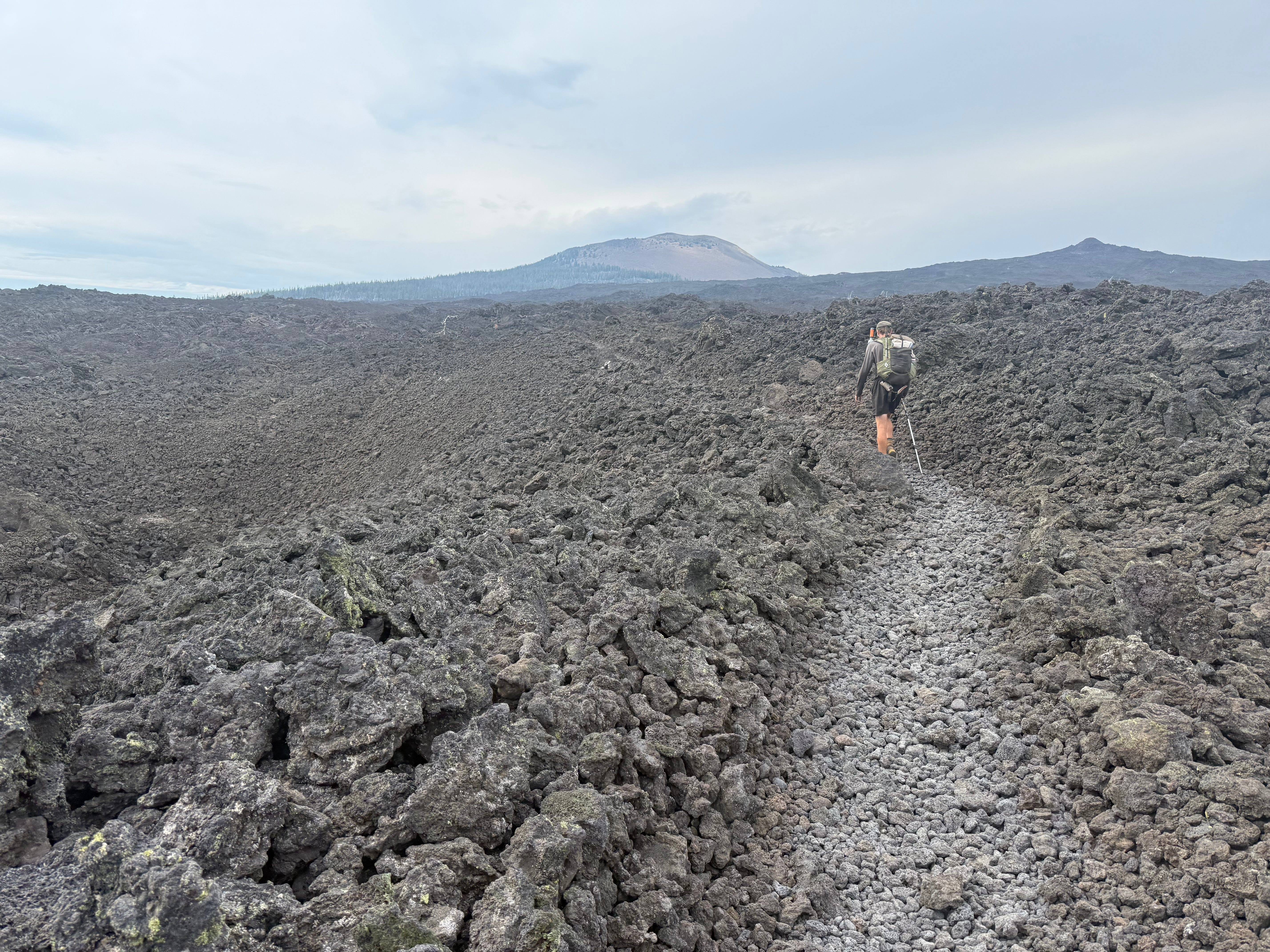 The final two days into town were rough but stunning. First, a recent fire blazed so hot it eradicated any signs of life for miles. It felt like we were walking on a different planet, with temperatures hitting the 90s at the peak of the day and no water in sight. Just as we rejoined the forest, it was gone again as a desolate stretch of basalt flow allowed for no vegetation. It was punishing on our feet, particularly with shoes that already had 900 miles on them and it took a full day to really recover.