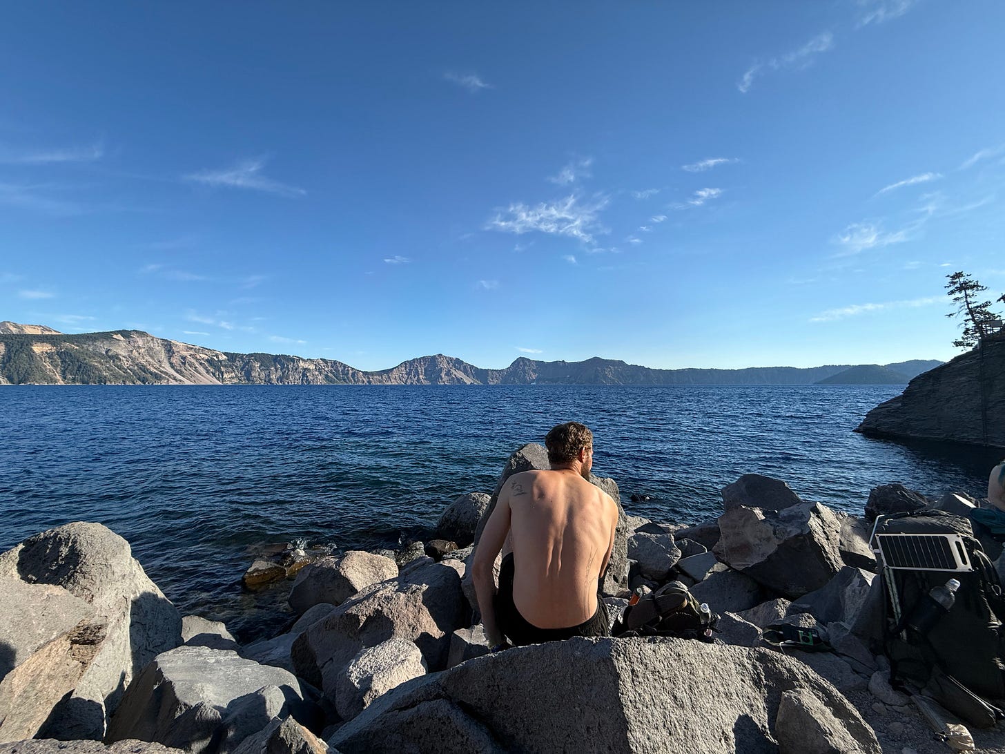 Once back on trail we were determined to take advantage of the flatter terrain and make up for lost time. Much anticipated was a day spent at Crater Lake National Park given COVID cancelled my planned trip here in 2020. I learned so much while there, including that its not a crater at all, but rather a caldera, with the eruption of Mt. Mazama 7,700 years ago causing the volcano to collapse in on itself. Snowfall & melt quickly collected to create the deepest lake in the United States. After walking along the lake’s rim, were able to hike down to the water for a dip, made particularly special given the water will be closed for restoration for 3 years after this season.