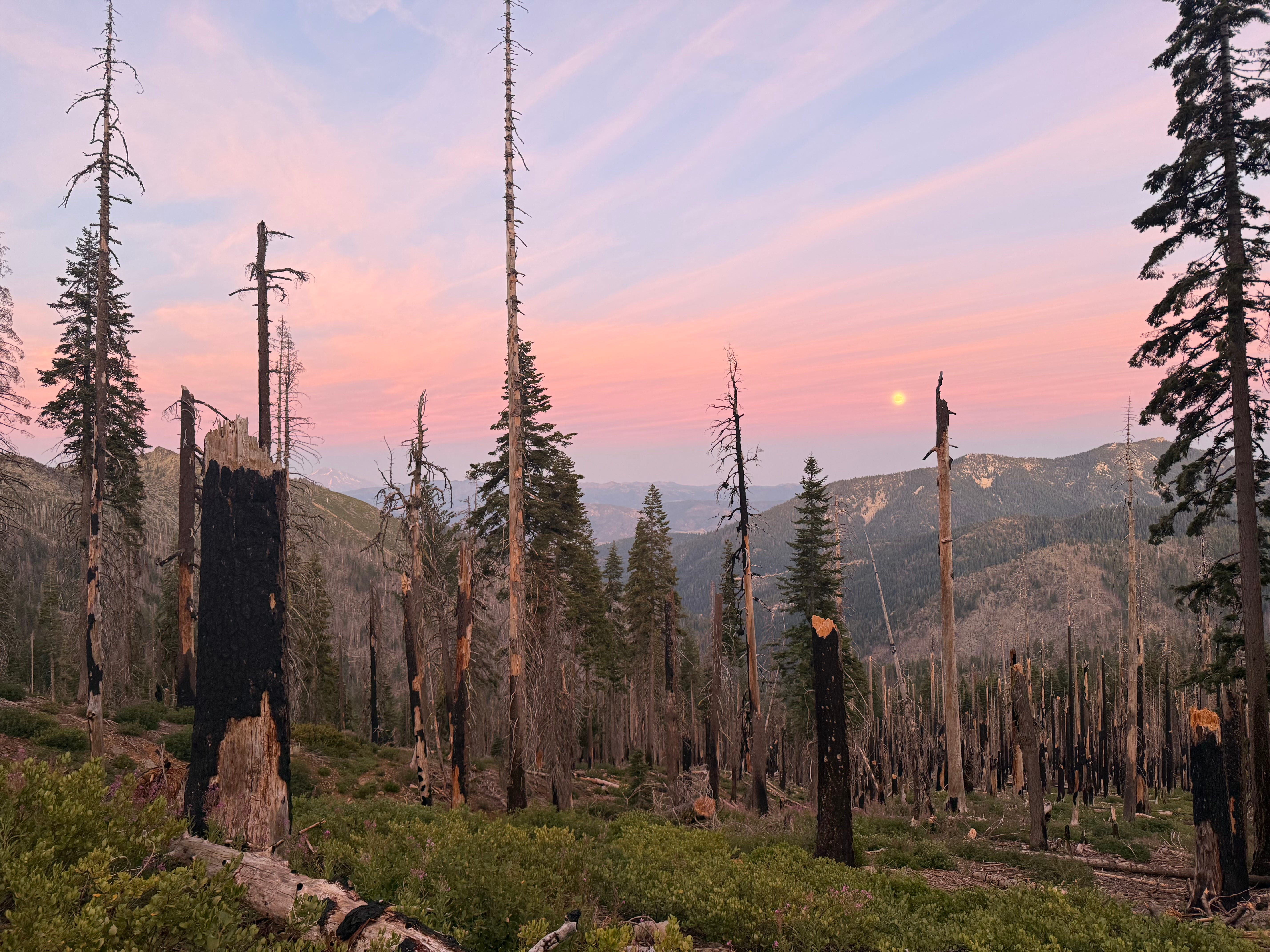 As usual, I caused our group to hike out of town later than expected. Our plan was to complete the 10 mile stretch back to the end of the fire closure before dark but the side trail we’d planned to take turned out to be unmaintained and extraordinarily steep. After a few hours of bushwhacking by headlamp we finally made it, although the sunset views on the way up made up for a lot of the hardship. The next two days in the Marble Mountain Wilderness were among the most serene on trail. The wildflowers in particular were gorgeous and the rolling hills reminiscent of a Monet painting. The colors ranged spectacularly but were a dulled matte that blended into the landscape, emoting the simplicity and stillness of a time since lost.